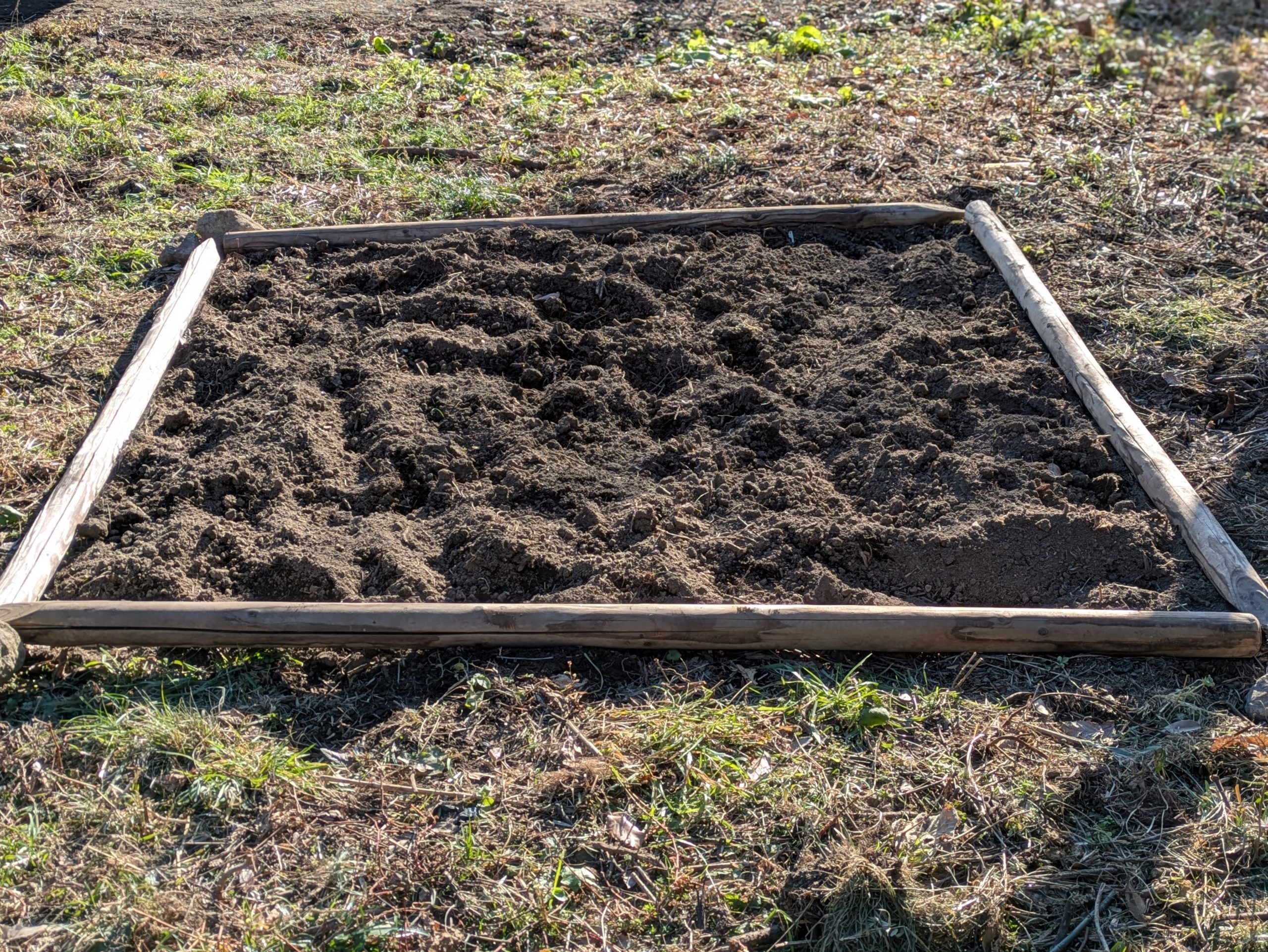 仕事の合間に無理のない範囲で進めるため、まずは1.8m×1.8mの小さな区画をじゃがいも畑にする予定です。